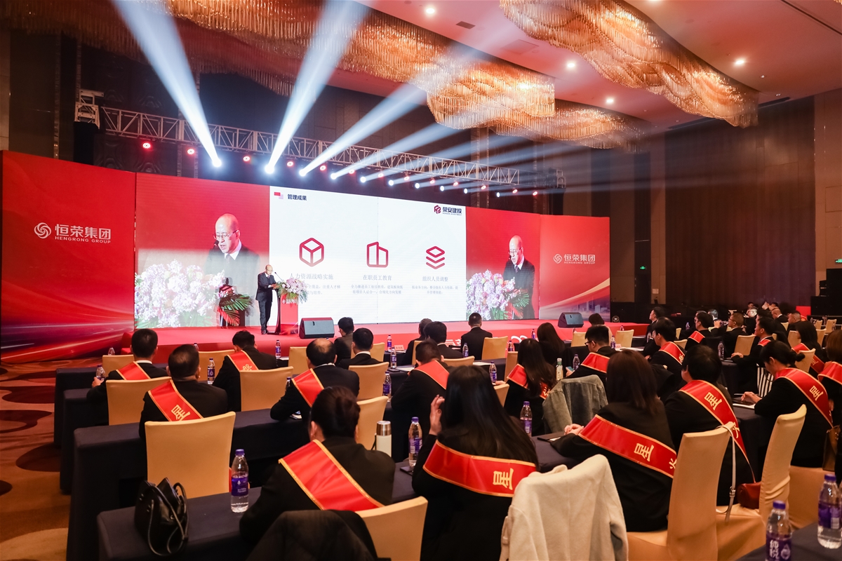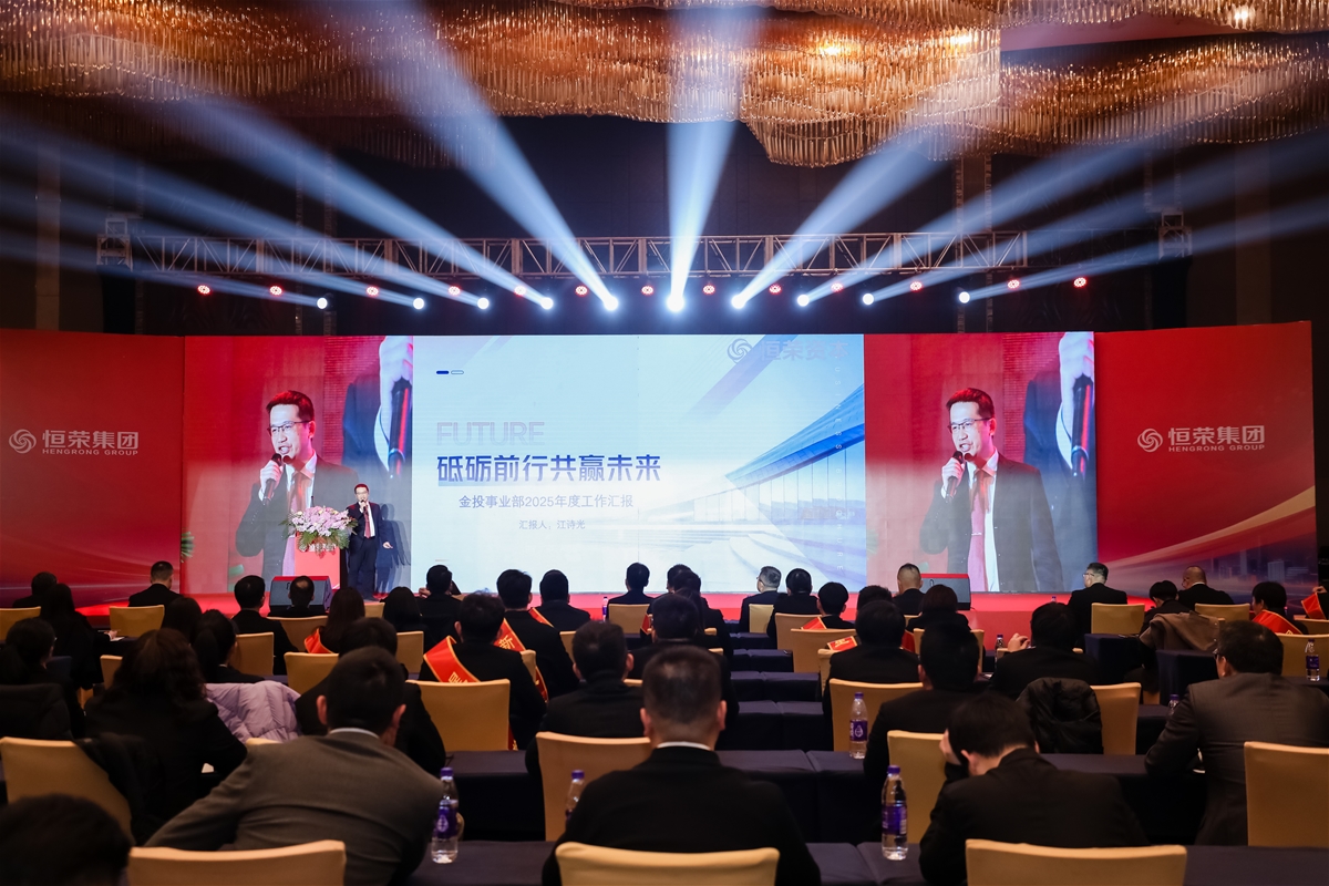 年终总结表彰大会上,建设投资、不动产管理、贸易、金融投资与服务四大事业部以及集团董事会办公室、财务管理中心负责人依次登台汇报。全面复盘2025年工作成果与“十四五”发展实绩,深刻剖析发展过程中的痛点难点,明确2026年及“十五五”期间的攻坚方向与核心目标,充分展现恒荣人“稳健经营、提质增效”的实干担当。
