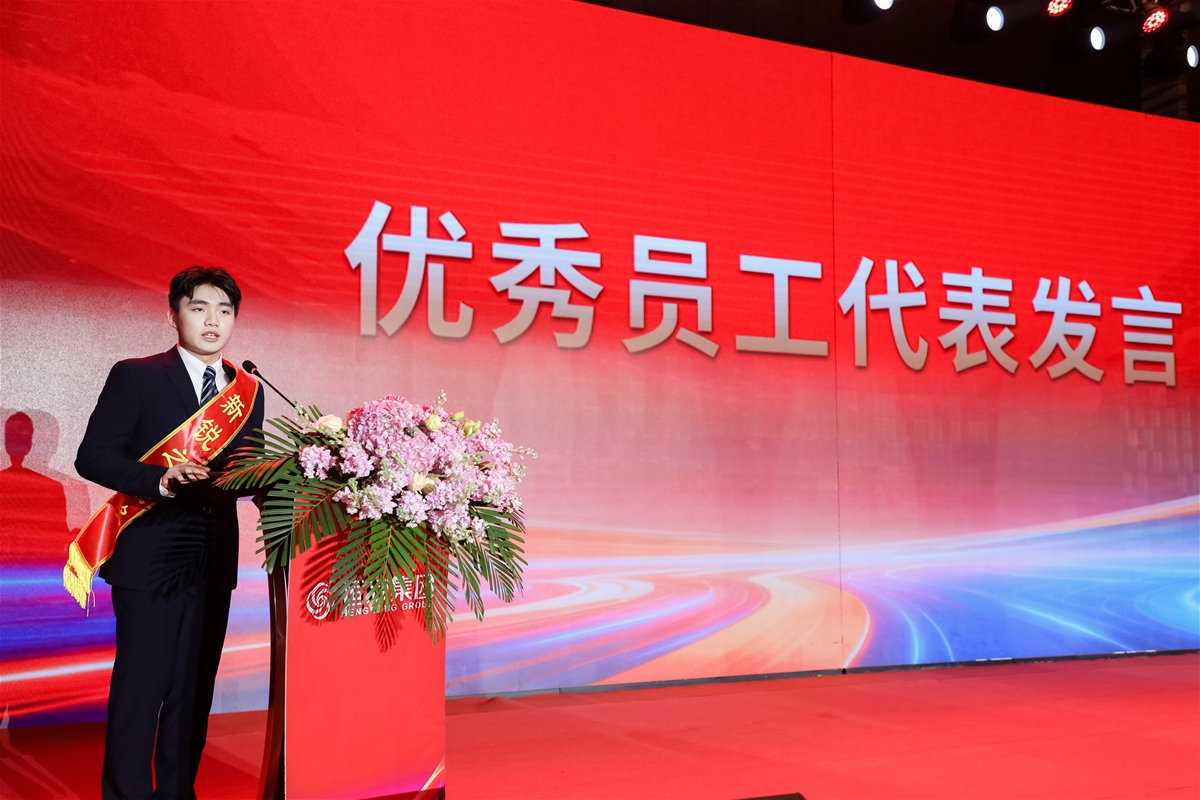 优秀员工代表上台发言,他分享了在岗位上的成长感悟,真挚的话语传递出恒荣人 “与企共进” 的赤诚情怀。